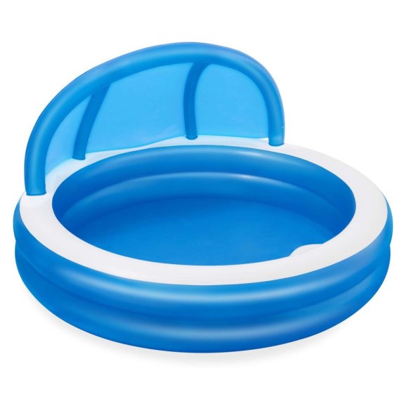 uży, niezawodny basen dla całej rodziny, w którym będą mogły swobodnie pływać dzieci. Basen jest lekki, dlatego z łatwością można go przemieszczać tam, gdzie w danej porze dnia jest najcieplej. Posiada dwa dmuchane pierścienie i idealnie sprawdzi się podczas letniego wypoczynku.pozwoli zapewnić Twojemu dziecku ruch i zabawę w wodzie. Idealnie nadaje się dla dzieci w wieku od 6 lat. Jest łatwy do nadmuchania i opróżnienia dzięki czemu przechowywanie go nie będzie sprawiało problemów. Dołączony do basenu daszek skutecznie uchroni Ciebie i Twoich najbliższych przed promieniami słonecznymi. Dmuchane siedzisko wewnątrz basenu zapewni Ci wygodny odpoczynek.