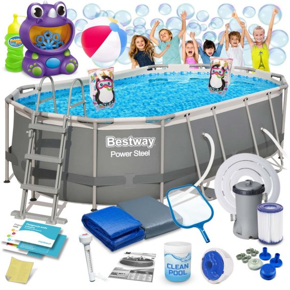 Basen Bestway 566 ma owalny kształt, co nadaje mu elegancki wygląd i pozwala na lepsze dopasowanie do przestrzeni ogrodu. Jego długość wynosząca około 427 cm sprawia, że pomieścić można dużą liczbę osób naraz, zapewniając komfortowe warunki użytkowania nawet podczas większych imprez lub rodzinnych spotkań. Wysokość basenu to aż 100 cm, co umożliwia swobodne pływanie oraz zabawy w wodzie bez konieczności martwienia się o głębokość.