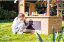 Z przodu drewnianego domku znajduje się specjalne koło, które pozwala na odgrywanie różnych ról. Po zakręceniu koła ukazuje się jeden z ośmiu motywów, co sprawia, że zabawa staje się jeszcze bardziej interesująca i pomysłowa. Domek można szybko przekształcić - od budki z lodami po magiczny zamek - tylko wyobraźnia stanowi ograniczenie!
