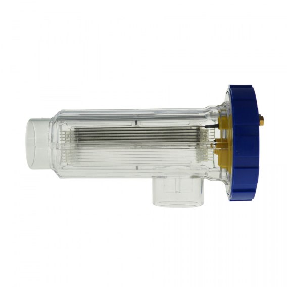 - Chlorator elektrolizy soli do uzdatniania wody w basenie. Oczyszcza wodę z mikroorganizmów, takich jak bakterie, glony i grzyby, zapewniając czysty i zdrowy basen. Ten model generuje 7 g chloru na godzinę i nadaje się do wszystkich typów basenów do 40 m3.